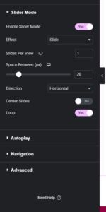 Step 2: Activating Slider Mode on the Parent Container